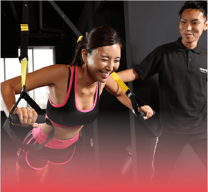 体幹トレーニングから全身を使うトレーニングまで、重り等を使わず、TRXサスペンショントレーナーを用いて行います。